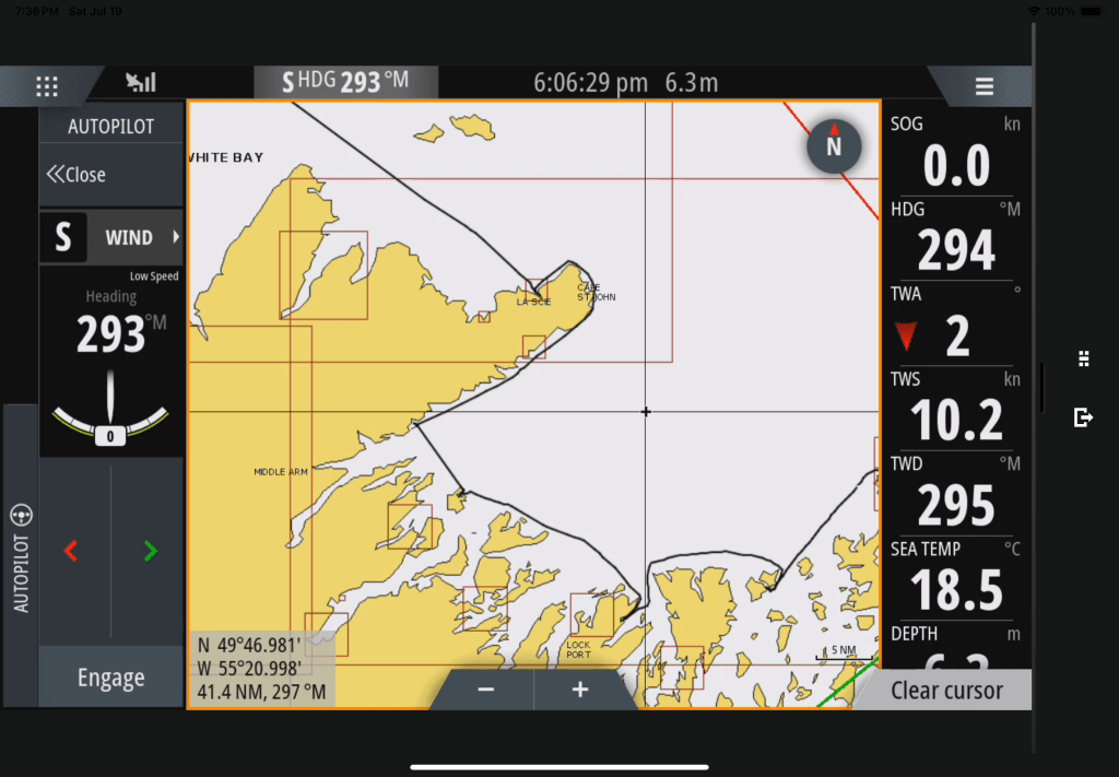 For those of you that have been led astray by the Marine Traffic App (I have no idea why it is not working for us…our instruments appear to be fine) we are no longer in the middle of the Strait of Belle Isle and have not been for weeks.