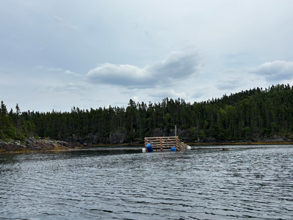 Sailed on to explore more of Notre Dame Bay. Found Budgell Cove, in Seal Bay, a nicely sheltered bay, which the map indicates has aquaculture farms. All we saw were fishing gear around the shore and a possible mussel raft at the end of the bay.