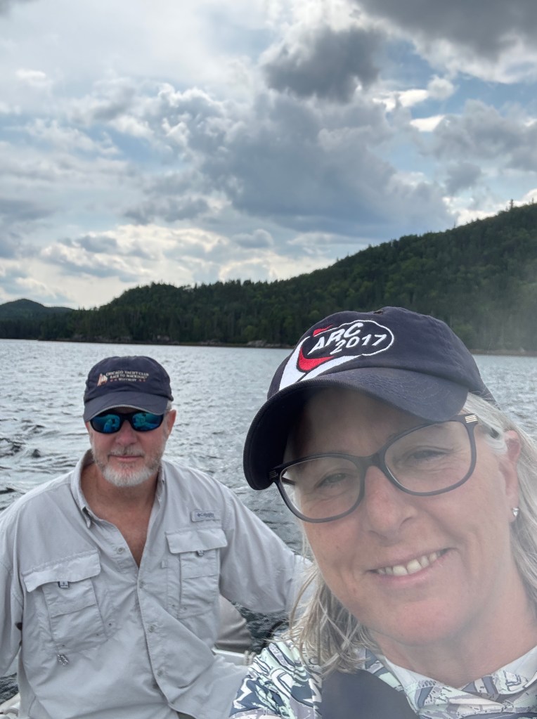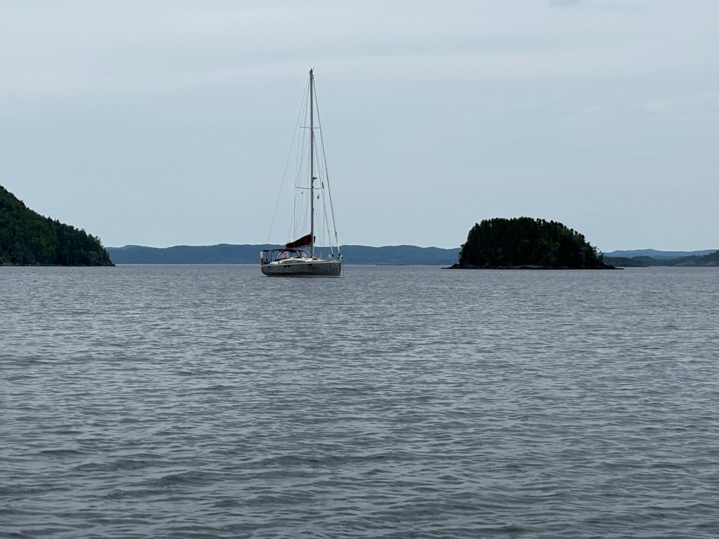 We were in Twillingate for 3 nights due to the weather forecast…and so glad we did. The rain came in steady volumes on Friday and the wind came howling out of the SW. We recorded 28 kts in the sheltered harbour behind the fishing boats! Gusts were much higher. Tikaani was pinned against the wharf, so all fenders out, lines watched -it was a less-than-restful night.