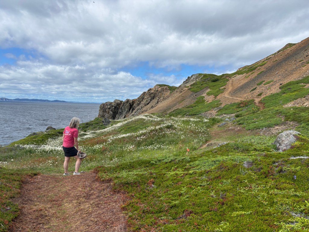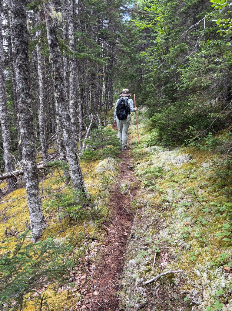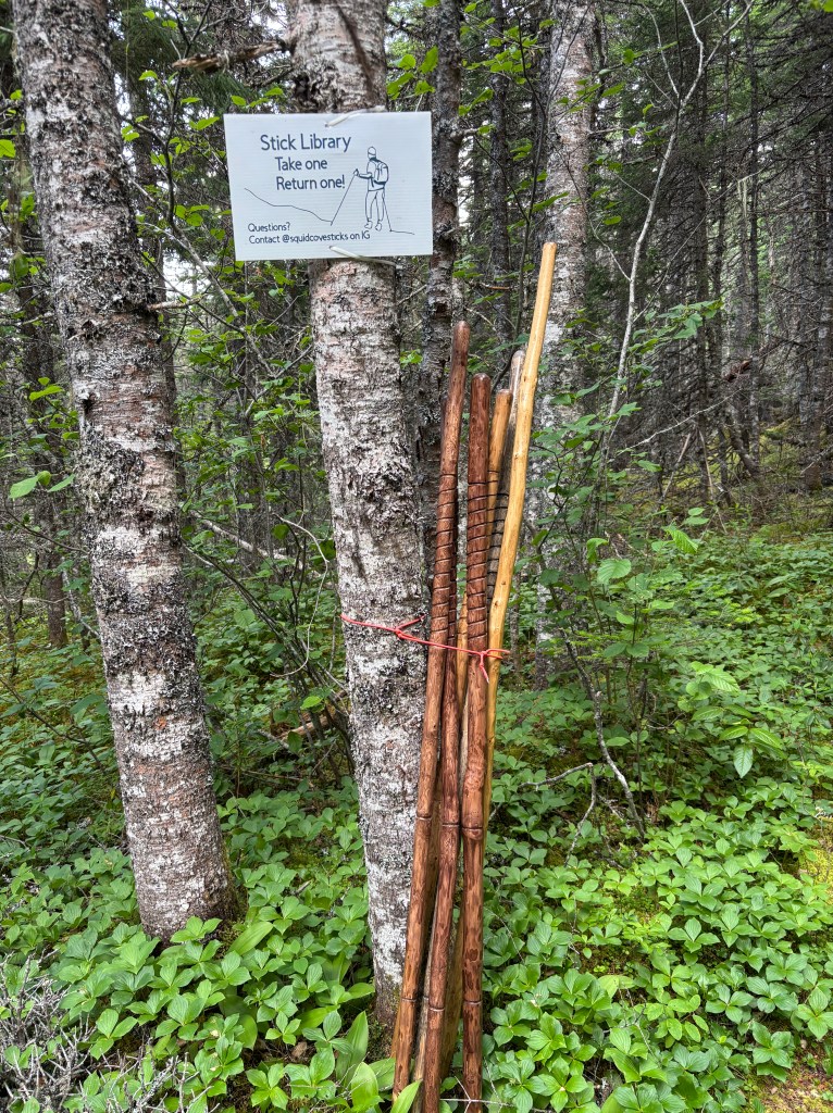 The Surgeon Cove Head Lighthouse Trail is a 3-hour, out&back, grind with lots of vertical, bogs, and forests but there are stunning views of the Exploit Island Chain from the Lighthouse. Mercifully, the Newfie mosquito swarm seem to have taken the day off but we were escorted by several squadrons of deer flies (that didn’t bite). Thank you to the Exploit Island community as they really take their hiking seriously by offering a ‘stick library’ – we were very grateful.