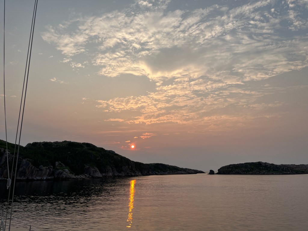 Saturday morning offered clear sky and more manageable winds of 15-20 kts. We reviewed PredictWind and planned possible harbours these next 7 days. We decided to continue east to an anchorage on the west side of Fogo island, BUT the fun in Twillingate was not over…