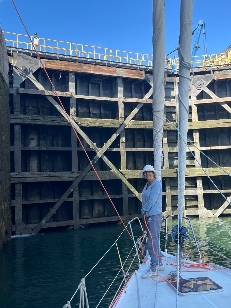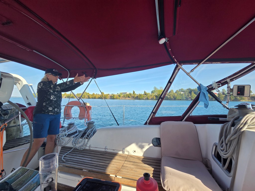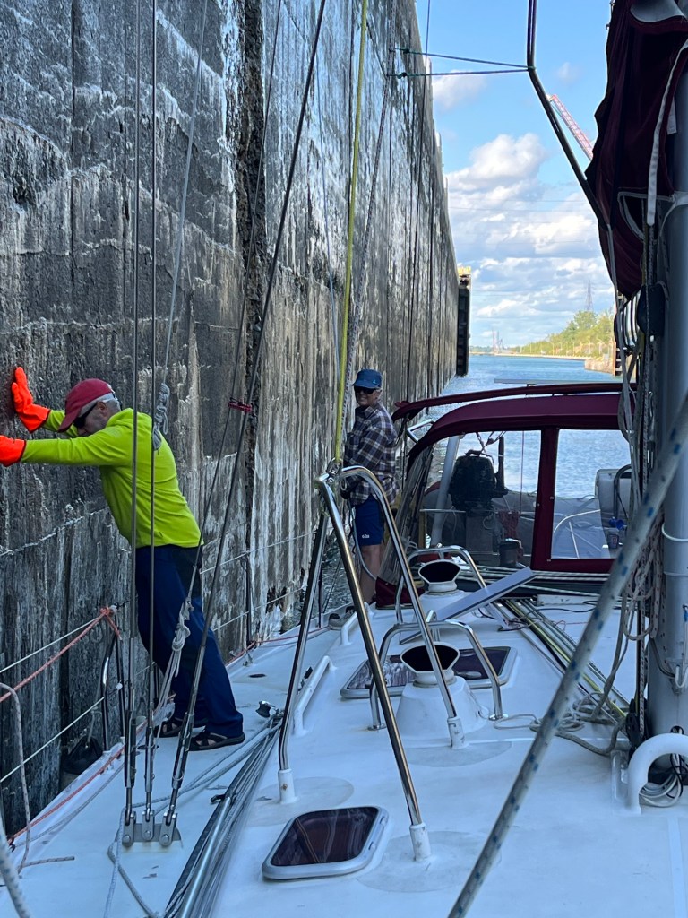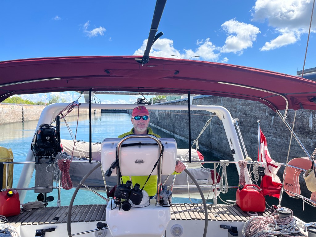 Locks were uneventful, but we were the only pleasure craft booked in. We did circles till the green light, entered, went to the very front and caught the lines. All fenders were out. The St.Lawrence Seaway have a very good website to book the locks ahead, to know which side to fender up and for payment. We went through 4 locks and 2 bridges – all timed for pleasure craft passage doing 5-6kts and to complete in 1 day.