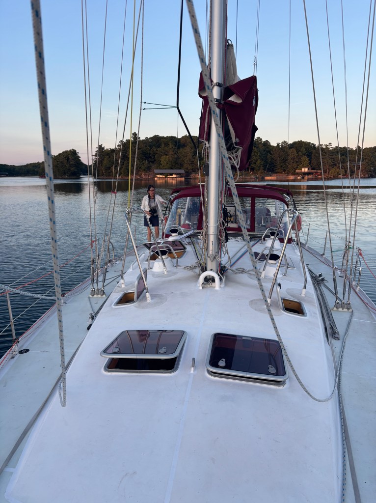The intent was to anchor off Amherst Island. With the winds from the SW, the north bays were best, but other boats had the same idea. We anchored in Kerr Bay, sharing with 6 other sailing vessels… this is the most boats we had seen in one harbour this whole trip!
