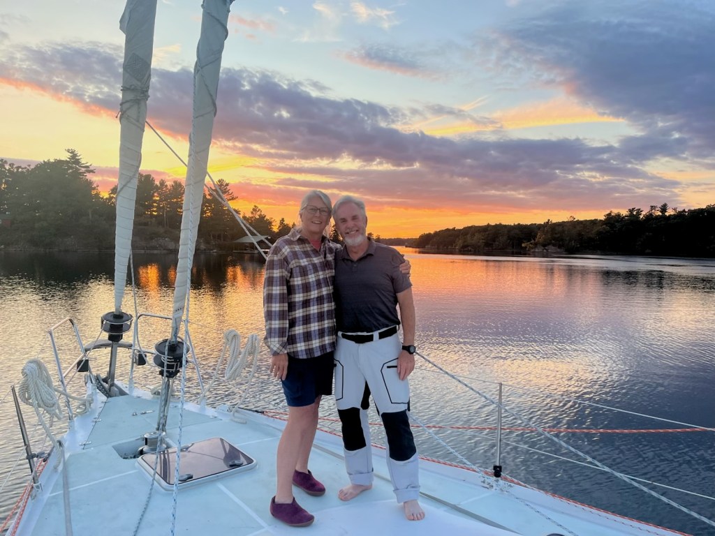 For timing, we anchored off Hanlon’s Beach for 2 hours to clean up and nap. It was a gorgeous sailing day. Docked, hugs, bubbly and an “I can’t believe we have done it” feeling was the afternoon. Combine that with the loss of sleep and we are happy but weary. Thinkin’ we should read our blog and make it all real again!