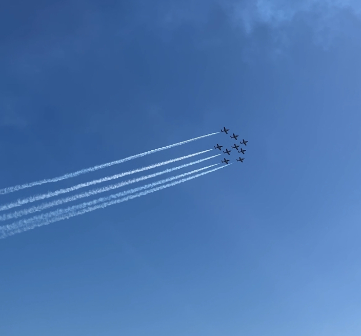 We had to get Jenny to Kingston (22nm away) for the Via train home. Thankfully, this still allowed us a wonderful early morning swim, then breakfast under way. On the way into Kingston we got an Airshow!… the Snowbirds were flying!